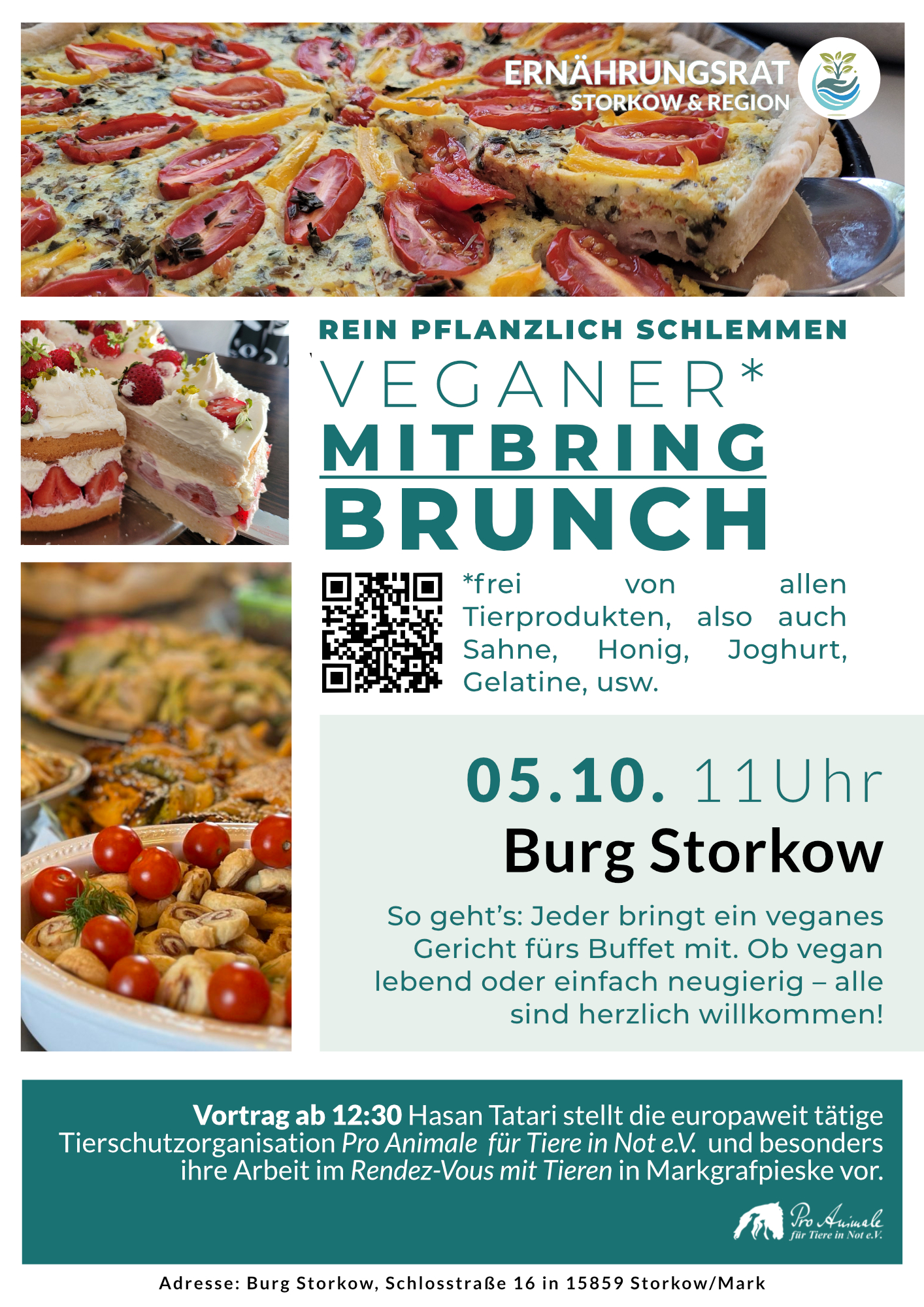 Burg Storkow Schloßstraße 6, StorkowVielfältige Gerichte kennenlernen und rein pflanzlich schlemmen beim gemütlichen Sonntagsbrunch! So funktioniert es: Jeder Gast bereitet ein veganes* Gericht für das gemeinsame Buffet vor und bringt es mit. Mit Kochbuch-Tauschbörse Brötchen und Getränke werden von uns bereitgestellt. *Vegan heißt: frei von allen Tierprodukten, also auch ohne Sahne, Joghurt, tierfetthaltige Margarine, Honig, Gelatine usw. Mit freundlicher […]